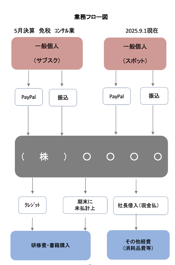売上と支出の流れを一枚にまとめた業務フロー図は、