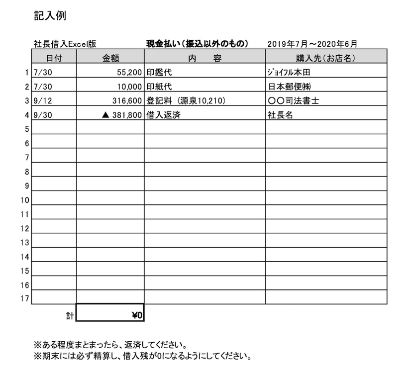 「社長借入金管理表」に記録し、早めに清算しておくことが大切です。
