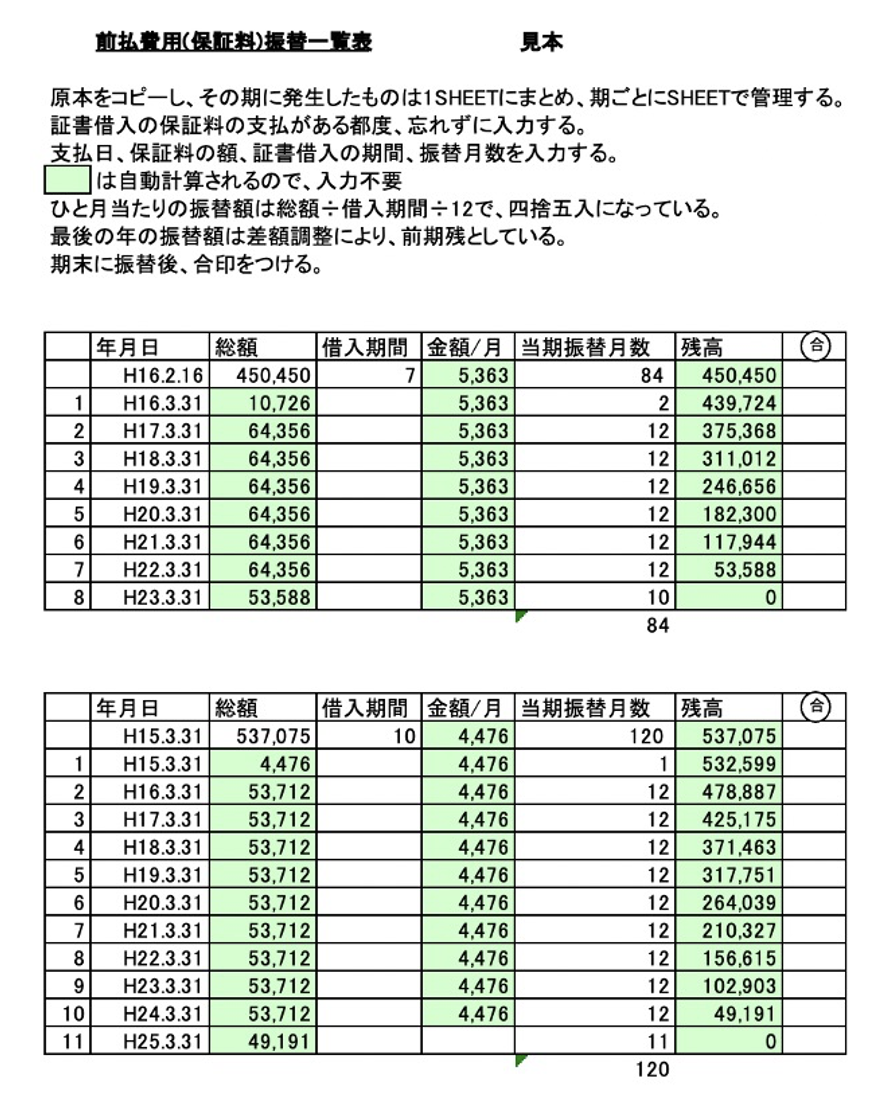 ◼️前納した保証料や保険料は「前払費用管理表」で整理する