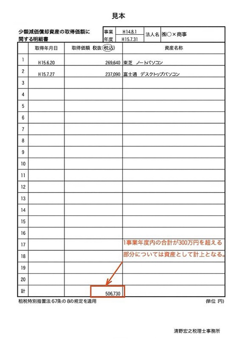●少額減価償却資産は一覧表で上限を見える化する